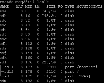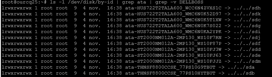 Nettoyer les disques de sda à sdm mais surtout pas sdl le disque système en raid hardware
